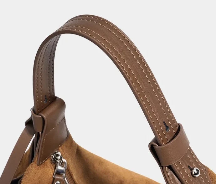 Essenza Italiana Luxury Suede Crescent Shoulder Bag – Genuine Leather Elegance